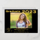 Simple photo graduation invitation with a black background and true gold foil for the text. This graduation card has room for 1 picture and can be 100% personalised. If you would like to add more text or other information feel free to use the back of the card by editing it with the editing tool rather than only filling in the templates. Make it uniquely yours!