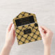 A very beautiful and elegant black and gold plaid pattern wedding invitation.