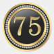 75th Birthday Sticker with printed diamonds set against a black gold background