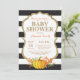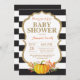 Orange Black and Gold Pumpkin Baby Shower Invitation. Gold Glitter. Boy or Girl Baby Shower Invitation. Black and White Stripes. For further customisation, please click the "Customise it" button and use our design tool to modify this template.