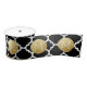 Black and Gold Quatrefoil Pattern Custom Monogram Satin Ribbon