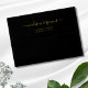 A black and golden customisable handwriting 5X7 envelope with a white lining inside. This personalised elegant script envelope is a classy way to send invitations.