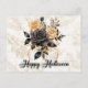 Whether you're sending out invitations to a Halloween bash or simply spreading seasonal cheer, our postcard captures the essence of Halloween fun with a touch of sophistication. The gold and black roses, green and gold leaves and foliage, and the "Happy Halloween" message in a beautiful black script font are classic symbols of the holiday, making this postcard a delightful choice for sending well-wishes to friends and family. It's a charming way to share the magic of the season with those you hold dear.