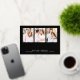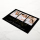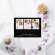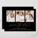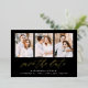 Announce your upcoming nuptials in style with our Elegant Script photo save the date card. The elegant save the date cards display 3 of your favourite engagement photos framed in black with "save the date" in a gold foil modern calligraphy script. Personalise the card by adding your names, wedding date, and wedding location. The minimalist save the date card reverses to a solid black background or a colour of your choice.