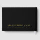 An elegant and sophisticated black and gold wedding guest book featuring gold foil swash calligraphy with your names in a modern san serif font on the front, spine and back covers.