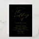 Elegant wedding invitations featuring your wedding details displayed in gold foil lettering accented by a beautiful calligraphy script on a black background. The back of the gold foil wedding invitations features your favourite engagement photo. This photo wedding invitation is designed to coordinate with our Minimalist Calligraphy wedding collection.