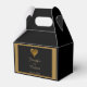 This beautiful and elegant design, called Black and Gold Scroll Accent Wedding, has a black background with a gold patterned border. At the top and bottom is a modern gold scroll design. On the front is a gold heart with your initials. This set has invitations, save the date cards, response cards, thank you cards, table number tent cards, envelope seals, wine labels, binders, return address labels and many more day-of wedding stationery pieces, favours, and gifts available. Use the envelope seal stickers for any of your DIY gifts - these are available in both large and small sizes! All elements are printed on our high quality products, they do not include any real gold, jewels, embossing, or other textile elements. All designs are copyright Noteable Expressions, Inc. All rights reserved.