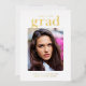 Black, white and gold serif photo graduation party invitation featuring gold foil text on the front.