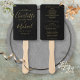 The fans are very pretty and easy to assemble. We utilized the original template and just inserted the names of our wedding party. After the product arrived we noted they read,”Made of Honor” rather than “Maid of Honor”. Upon re-checking the website we noticed the typo is in the original template and was not a mistake on our end. It is too late to return because our wedding is in just a few days but if we had time we would certainly request an exchange. See review above regarding typo.