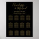 Black and gold elegant signature wedding seating chart featuring signature style names, this chic, stylish seating chart can be personalised with your information in modern lettering. Designed by Thisisnotme©