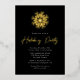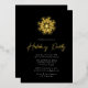 Modern foil holiday party invitations featuring a gold foil snowflake at the top of the design with a festive black background. "Holiday Party" is displayed in a handwritten gold foil script. Personalise the foil snowflake holiday party invitations with your party details in white lettering.