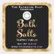 a luxury label for bath salts with a black background and gold border and space for your logo.
