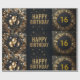 Make your gift stand out with this elegant, modern and customisable happy birthday wrapping paper. The design features a luxurious pattern of "HAPPY BIRTHDAY" text, shimmering balloons, and the customisable number "16" set against a sophisticated black background with golden glitter and starburst effects. This unique gift wrap adds a high-end, glamourous touch to any present and is perfect for any birthday celebration.
