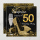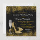 Beautiful black and gold stepping into 50 surprise birthday party invitation with elegant champagne glass, and gold high heel shoes. You can easily customise this elegant black and gold stepping into 50 birthday party invitation for your event by simply adding your details in the font style and colour, and wording of your choice.