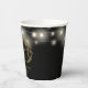 Black and gold string lights and floral wedding paper cups, personalised with your names and special date. Designed by Thisisnotme©
