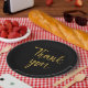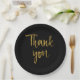 Modern and elegant, "Thank you" in gold coloured font on black background. Suitable for weddings, corporate events and more.