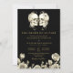 This black and gold 'till death do us part' gothic floral skulls wedding invitation can be personalised with your information in modern typography and special photo on the reverse. Designed by Thisisnotme©