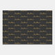 Black and Gold Typography Add Name & Monogram Mens Wrapping Paper Sheet