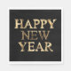 Happy New Year Elegant Faux Golden Typography on Black Background Stylish New Year's Party Napkins