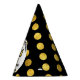 This design features faux gold polka dots with a cute unicorn face in matching colours. Easy to personalise with the birthday party information. Coordinates with our Gold and Black Magical Unicorn paper products and accessories.