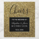 Simple, elegant, luxury glitter gold and black wedding favour wine label with modern script. Perfect choice for contemporary glam winter weddings!