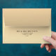 Luxury, elegant, vintage black and gold 5x7 envelope for wedding invitations with return address and unique floral swirls inside.