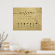 Welcome your guests with this elegant black and gold wedding welcome sign with timeline! Ability to customize sign with your details and your own wedding timing. If needed, you can select customize further using editing tool and re-arrange or move icon images and their text to suit you timeline needs by selecting images, or their text on editor screen and dragging them to where you like. Design with attractive gold print background and text and timeline icons in black. Modern hand written calligraphy details. Stylish, simple and clean design. Easy to frame or spray glue/staple to inexpensive MDF for display. Part of our "Black and Gold Monogram Wedding Collection" with a variety of coordinating products available. Visit the entire collection at: https://www.zazzle.com/collections/black_and_gold_monogram_wedding_collection-119092477004367833 Dimensions of sign in demo photo with stand: 24" x 18"