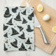 Black and Gold Witch's Hats Stars Green Halloween Tea Towel