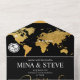 Evoke wanderlust with our Black and Gold World Map All-in-One Wedding Invitation. Featuring a sophisticated blend of black and gold accents, this invitation is perfect for globe-trotting couples. Simplify your planning with all details conveniently included. Set the stage for a stylish celebration that reflects your love for adventure and exploration.