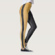 Modern leggings with one gold and another black glitter trouser leg. On both side is a stripe opposite colour