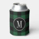Cute trendy monogrammed can or bottle cooler with a preppy buffalo check plaid pattern. Personalise it with a custom monogram or other text in a circle frame. Click Customise It to change text and fonts to create a unique one of a kind gift for your bridesmaids and wedding party! Contact me before ordering to customise patterns or design to coordinate with any wedding colours.