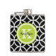 Black and Green Geometric Diamonds Custom Monogram Hip Flask