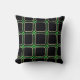 Original digital artwork consisting of a vintage, retro square pattern reworked into a black and vivid green tone design with a slightly abstract style of lines and shapes and mild distressed appearance. The brilliant colours make a stunning image for this pillow. The back of the pillow is in the same design so either side can be used. These pillows are great quality made of cotton however you may choose other options. It would look great on the couch, sofa, bed or chairs with a one-of-a-kind interior design.