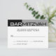 A reply card designed to look like the masthead of a magazine starts the celebration for your Bar Mitzvah boy. This response card features the title "Bar Mitzvah" in a deep black and charcoal grey panel at the top. Customised reply text prints below. Add the Bar Mitzvah's name and event date or other information on the reverse. Contact this shop if you need further customisation or want to add a Hebrew name. Available in alternate colours with options for the Bat Mitzvah.