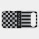 Customise this iPhone 17 air case with black and grey stripes on the top half and black and grey chequered pattern on the bottom half with your name in a modern CAP font in the middle in grey on black. It's preppy, trendy and bold - definitely cool!