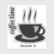 A pack with two simple vinyl stickers for coffee lovers . One says "coffee time" the other is a vector drawing of a black and grey coffee mug . They're perfect to decorate your laptop .