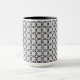 This mug features a clean and crisp abstract graphic tiled pattern in shades of black and grey.