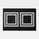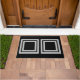 It's a smooth fleece material with a non-slip rubber latex backing, good for indoor or covered outdoor use. You can customise the navy blue background to a different colour. The large door mat is 24 inch x 36 inch, 1/8 inch thin. The small door mat is 18 inch x 24 inch, 1/8 inch thin.