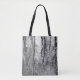 This tote bag presents tree reflections which create a shimmering abstract pattern on the pond in tones of black, white, silver and grey.