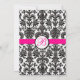 Monogrammed black and white damask patterned wedding invitation with hot pink accents.