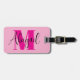 A black cute trendy script for her name over a hot pink bold modern monogram letter against solid girly light pink.