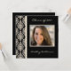 Graduation party invitations with an elegant ivory and black damask background to frame your photo. Enter name and year on the front, and celebration details on the back.