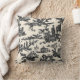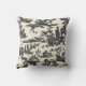 Elegant accent throw pillow done in a black and ivory French Toile pattern, of everyday country life.