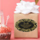 Black and metallic gold, elegant vintage ornate frame and floral damasks pattern, save the date oval sticker. Design is available on other products.