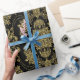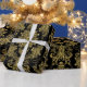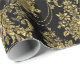 Black And Metallic Gold Floral Damasks Pattern Wrapping Paper