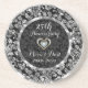 Black And Metallic Silver 25th Wedding Anniversary Coaster