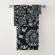 Black and Floral Design Mint Green and Black Bath Towel Set, including bath towel, hand towel and wash cloth