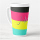 Black and Neon Colour Block Stripe Monogram Name Latte Mug