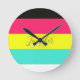 Black and Neon Colour Block Stripe Monogram Name Round Clock