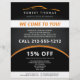 A fluid illustration of an orange sportscar set on a black is combined with your name or business name for an instant logo on this customizable flyer. Great advertising for your mobile auto detailing, auto repair, car wash, or auto-based business. Customize the text and promotion for your own unique offering. This front and back design provides plenty of space for your details and price lists. Original design © 1201AM Design Studio | www.1201am.com